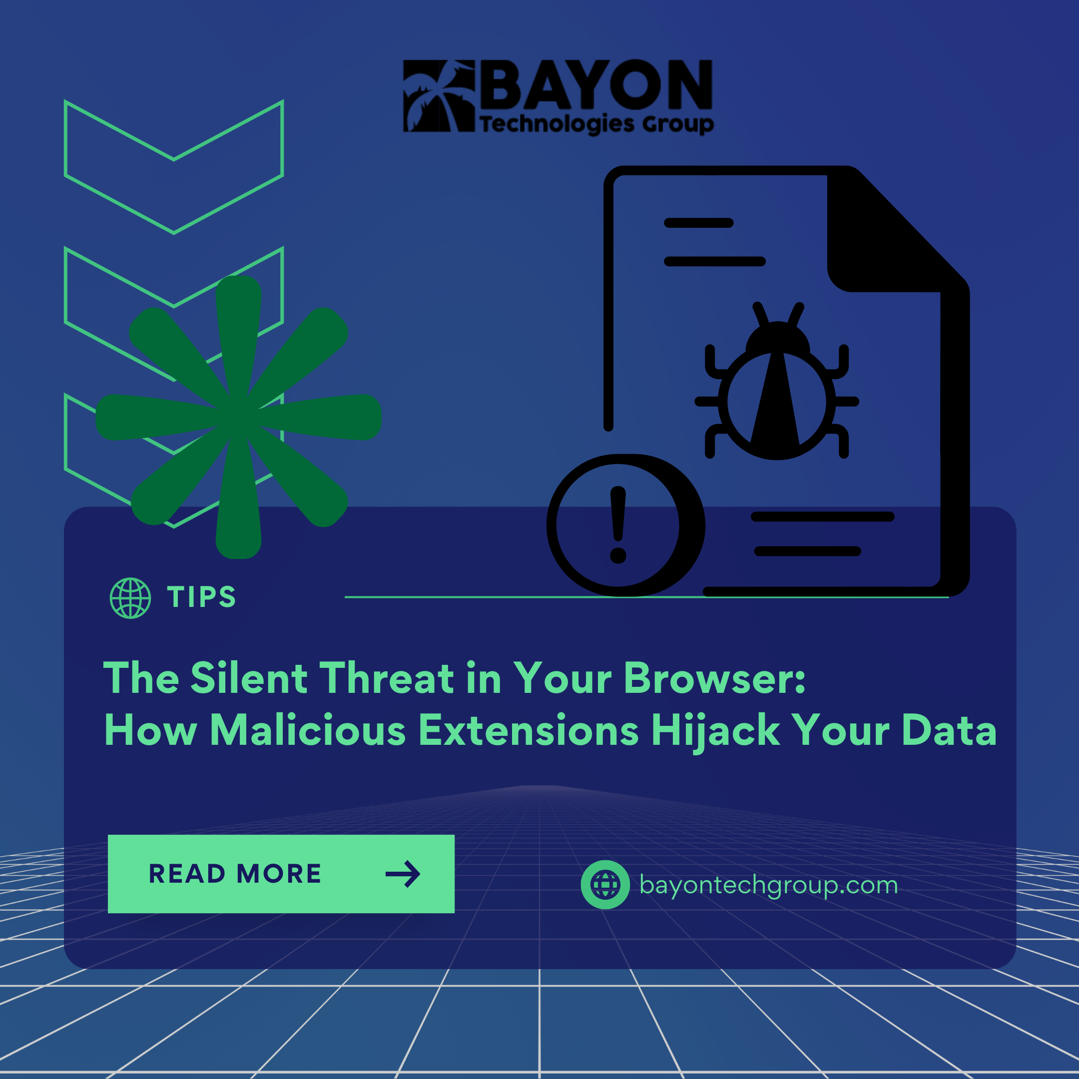 The danger presented by malicious browser extensions serves as a potent reminder that cybersecurity is about protecting every endpoint and user behavior, not just firewalls and antivirus programs. At Bayon Technologies Group, we assist companies and individuals in developing all-encompassing, human-centered security plans. Our services include vulnerability assessments of your complete digital arsenal, managed endpoint protection to flag suspicious behavior, and security awareness training to assist your staff in identifying digital dangers.