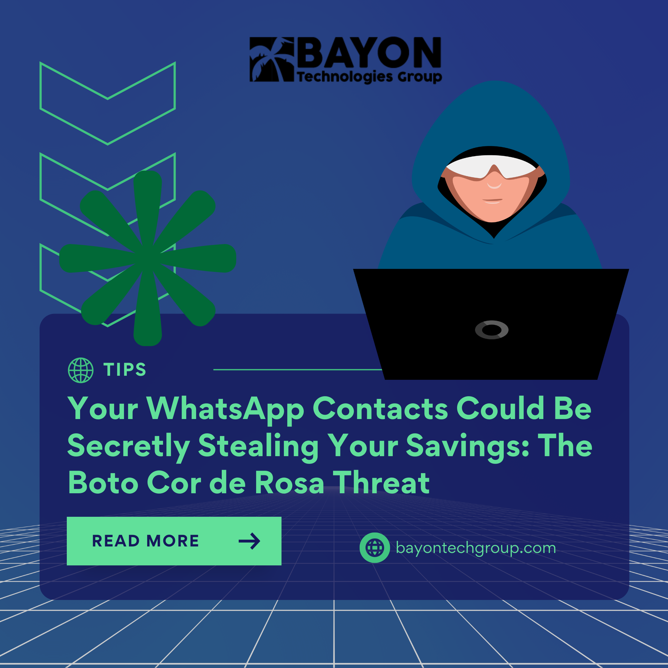 We at Bayon Technologies Group assist people and companies in creating strong defenses against these kinds of constantly changing dangers. Our experience guarantees the security of your financial assets and digital life, from establishing sophisticated endpoint detection systems to providing employee security awareness training. Contact us today!